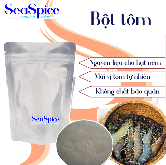 Thành phần gồm có tôm, muối, đường, bột tỏi, chất điều vị (E621) Dạng bột, đặc trưng mùi vị tôm tự nhiên